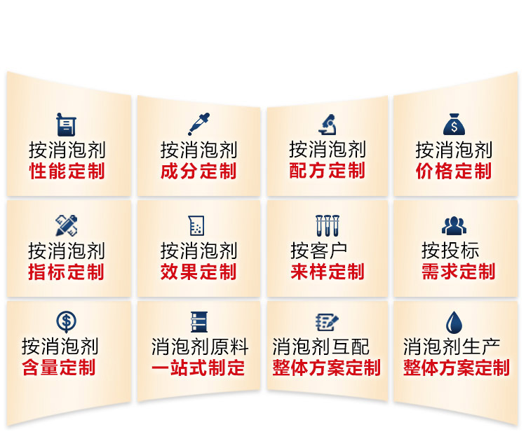 • 消泡劑功能:耐高溫、耐酸堿、耐剪切、耐嚴寒和耐嚴寒等特點